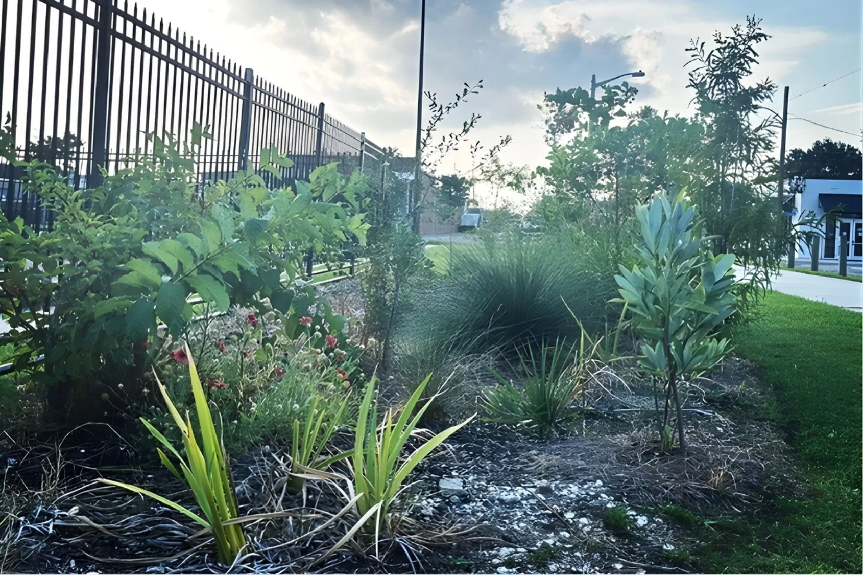 Restoring even small patches of native ecosystem can interrupt that damage by absorbing water, cooling surfaces, and creating habitat.